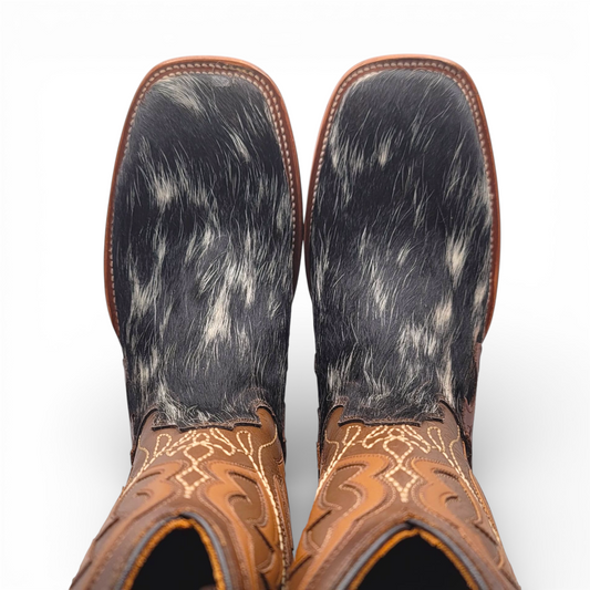 Men Cowhide Hair Western Boot Wide Square Toe Size 9.5 BOX 113 (Final Sale)