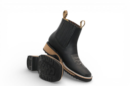 Mens Crazy Leather Boot Black – Lightweight Rubber Sole H42D2605