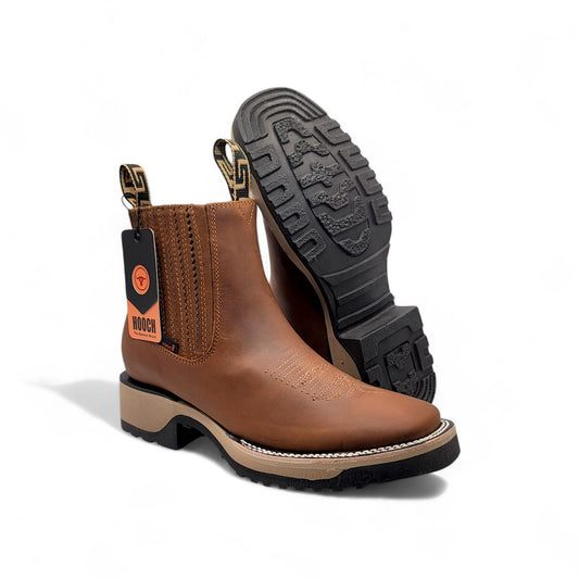 Mens Honey Exotic Print Western Botin – Embossed Leather Wide Square Toe H42RM7251