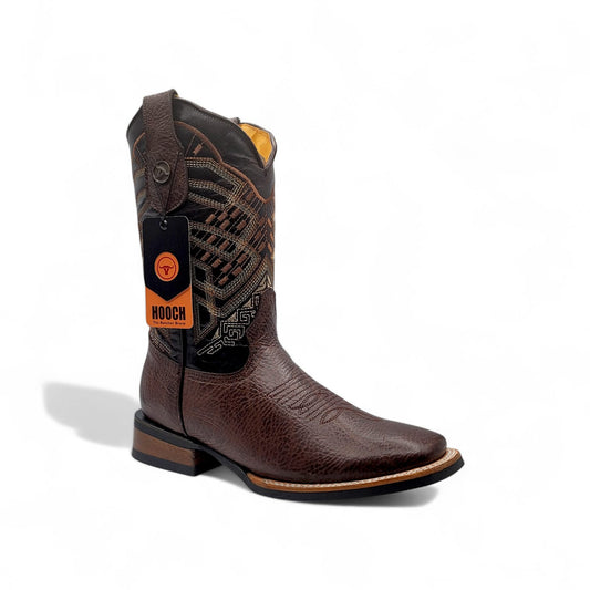 Mens Double Zipper Square Toe Shoe – Embossed Genuine Leather Chocolate