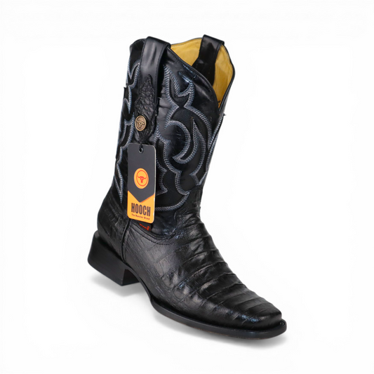 Mens Caiman Belly Print Boot Black – Square Toe Genuine Leather H510573