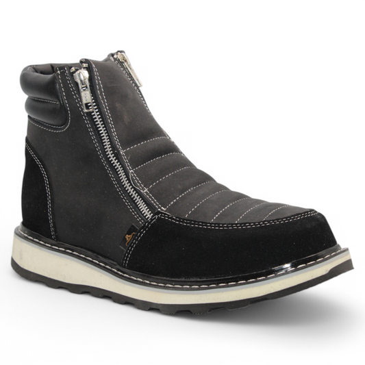 Men’s Double Zipper Leather Work Shoe – Round Toe | Soft Toe | Rubber Sole