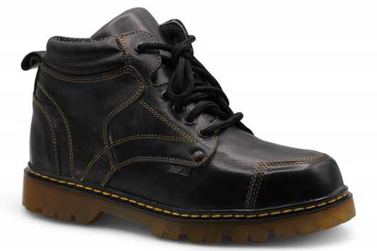 Men’s Round Toe Leather Work Boot – See-Through Sole | Lace-Up | Rubber Grip Black