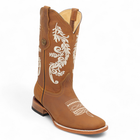 Women’s Honey Square Toe Boot – Genuine Leather 12” Embroidered Shaft - H22M2651F