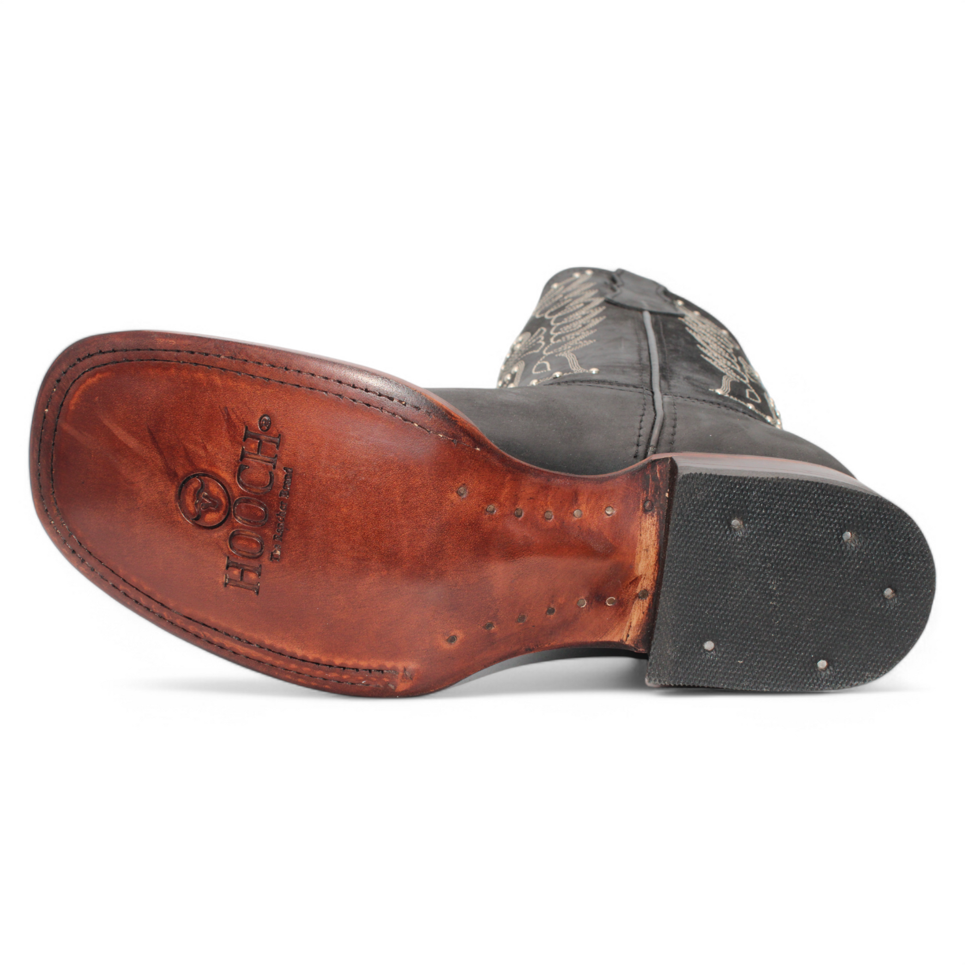 Women’s Square Toe Western Boots Black Genuine Leather Embroidered 12” Shaft - H222605