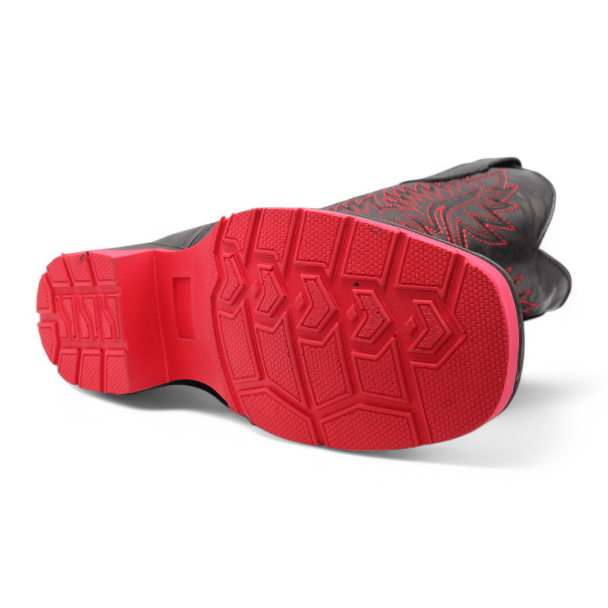 Stand out from the ground up. These Men’s Square Toe Black Boots feature a sleek black leather body paired with a bold red rubber sole for eye-catching style and dependable traction. The square toe adds that classic Western edge, while the rubber sole gives you comfort, grip, and durability for everyday wear.