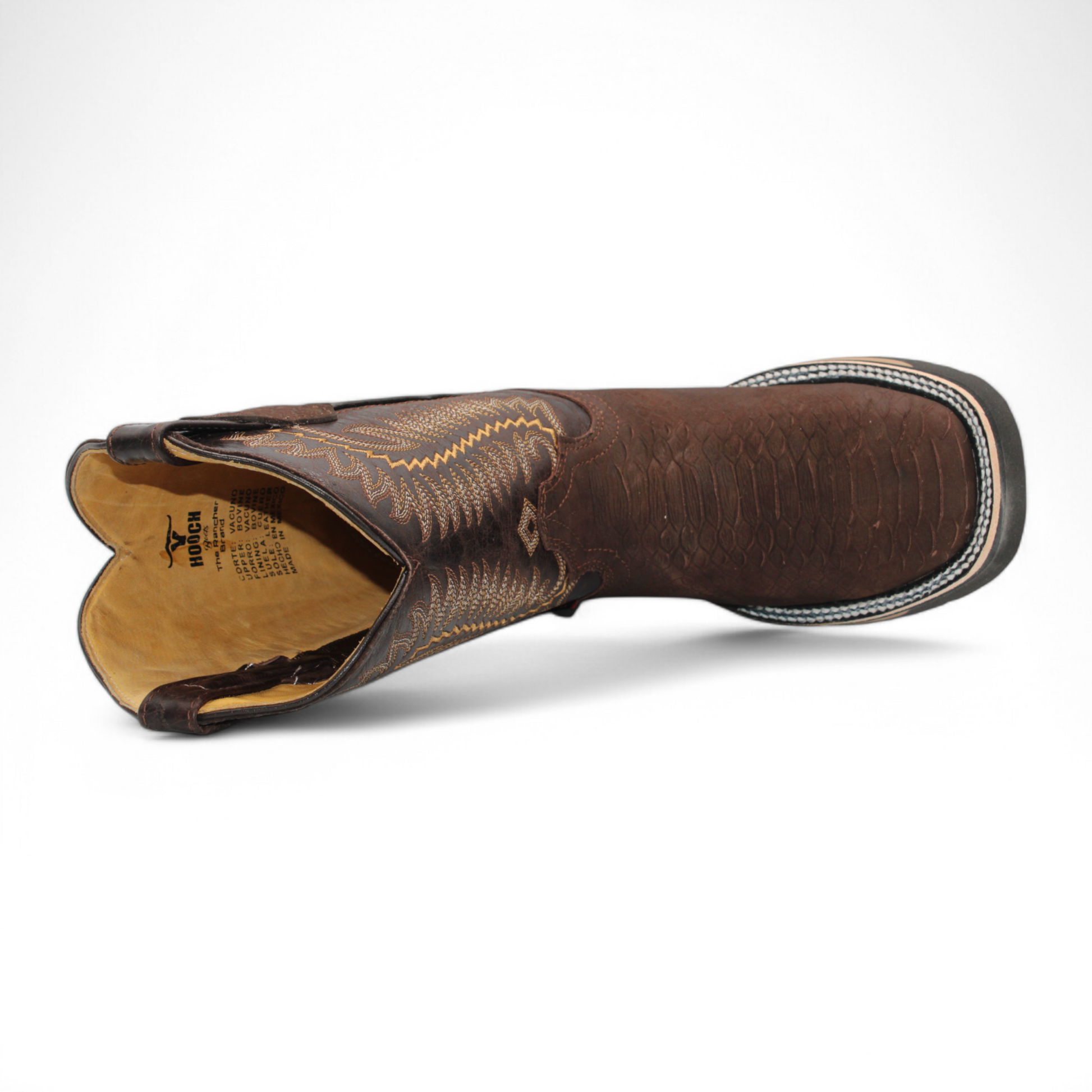 Men’s Square Toe Boots Chocolate Python Print w/ Rubber Sole
