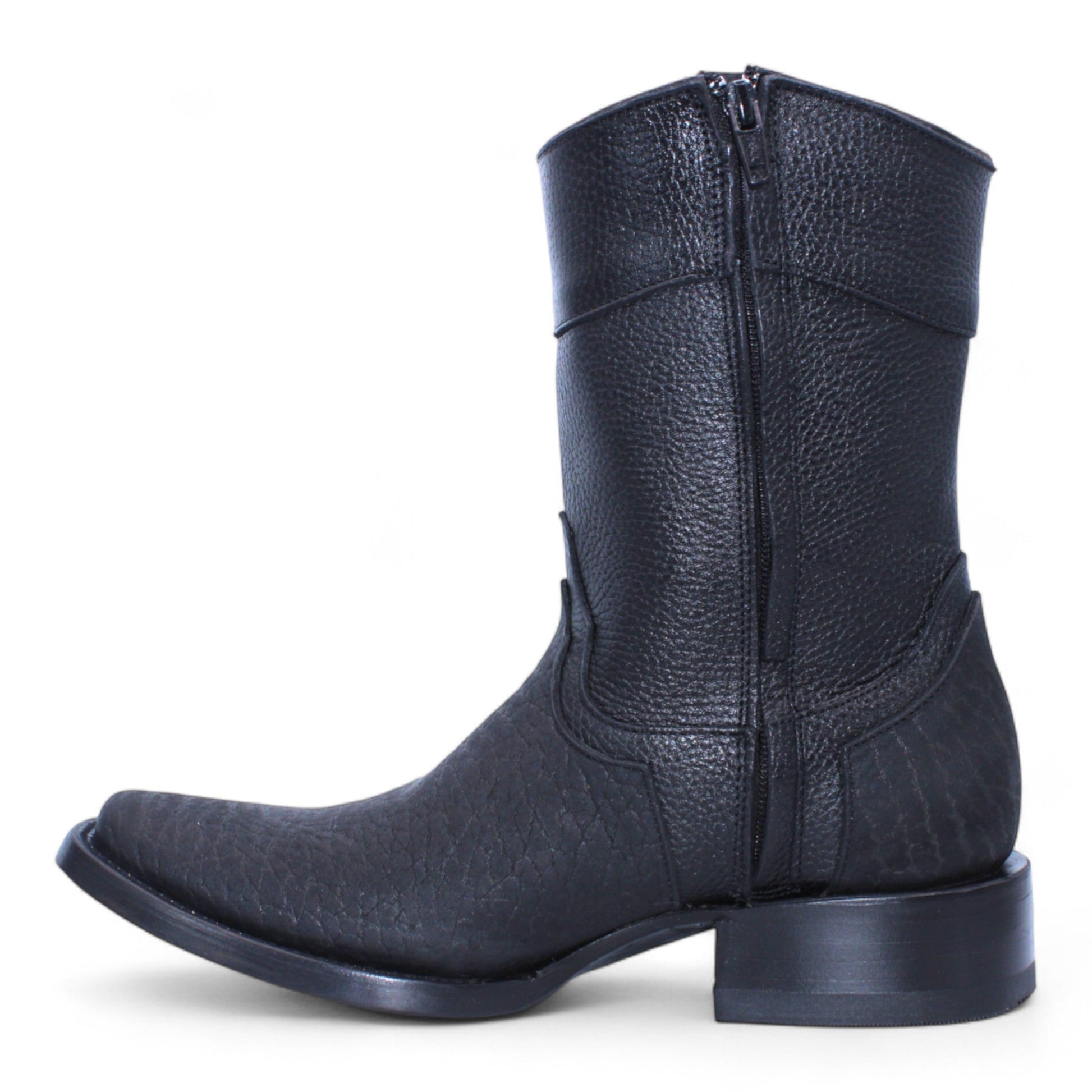 Men’s Black Dubai Toe Bull Shoulder Leather Boots w/ Zipper