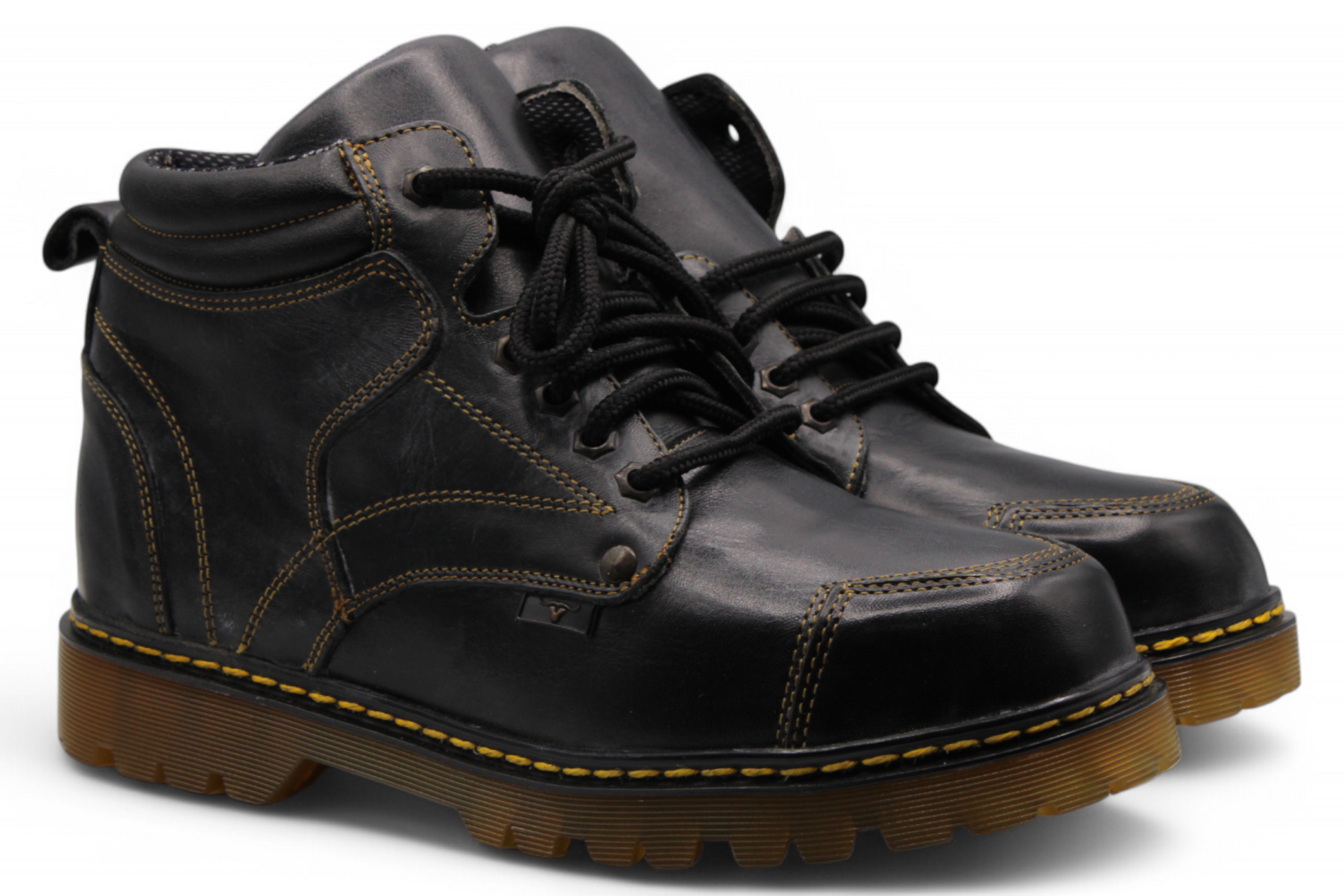 Men’s Round Toe Leather Work Boot – See-Through Sole | Lace-Up | Rubber Grip Black