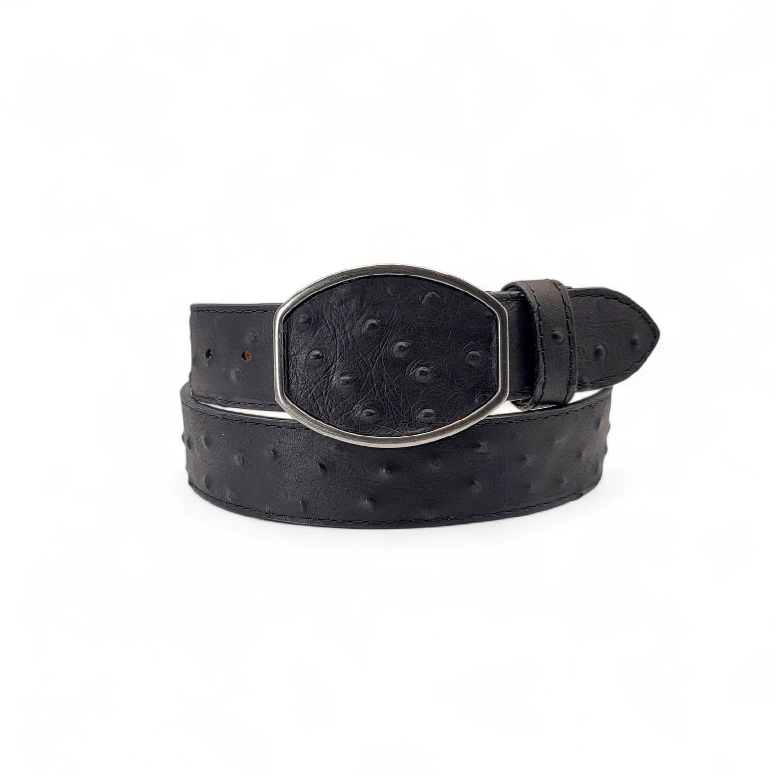 Men’s 2” Ostrich Print Western Leather Belt Black – Classic Cowboy Style HC-126