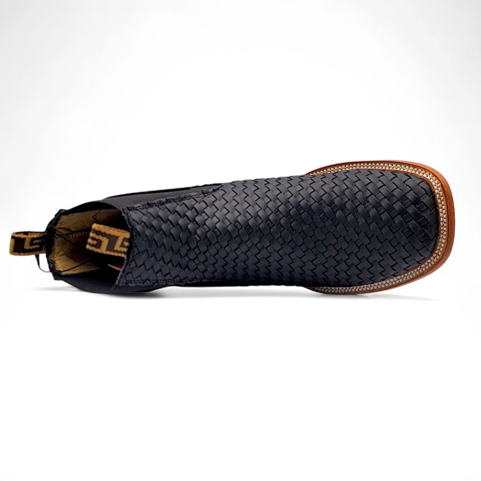 Upgrade your Western style with this Mens Botin Petatillo Boot in Black Genuine Leather. Built with a traditional Petatillo weave pattern and crafted from premium leather, this ankle-height boot offers durability, comfort, and true cowboy character.