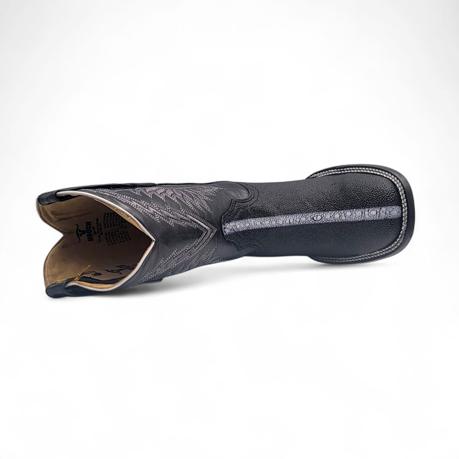 Men’s Wide Square Toe Full Rowstone Stingray Print Western Boot Genuine Leather